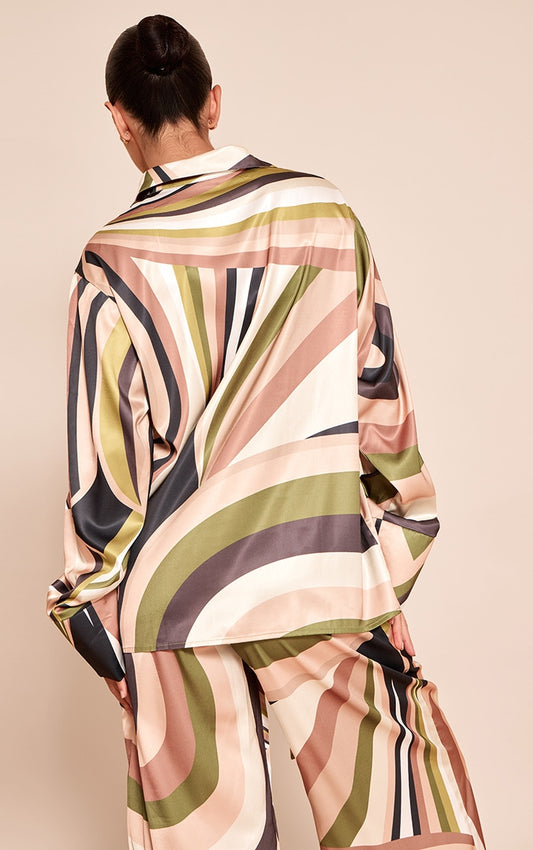 Green Abstract Print Oversized Deep Cuff Shirt