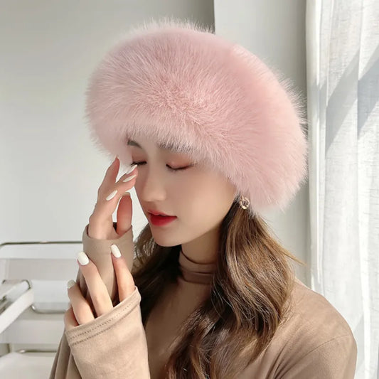 HT4003 Fur Hat Women Warm Snow Ski Cap Female Faux Fox Fur Bomber Hat Lady Windproof Winter Hats for Women Russian Hat Ushanka