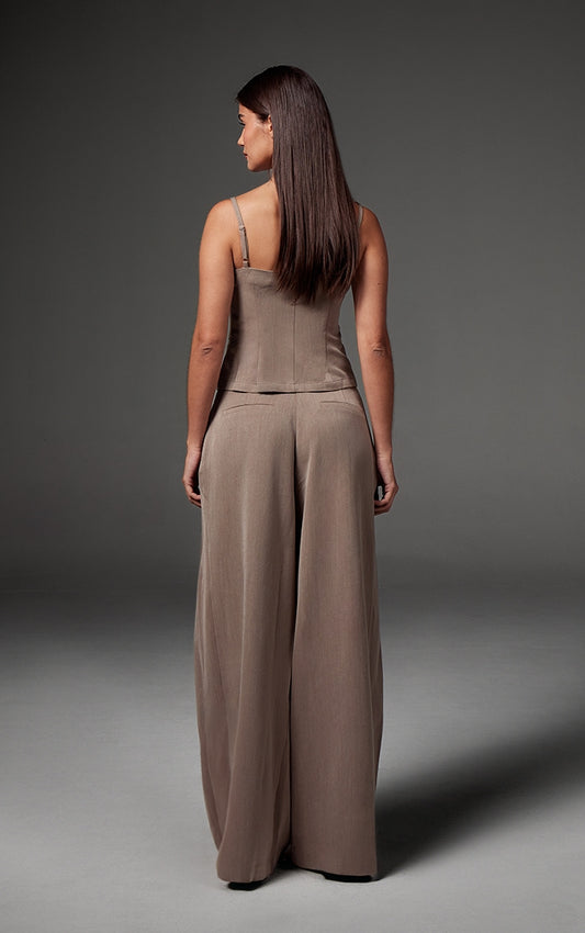 Premium Taupe Woven Pleated Waistband Extreme Wide Leg Trousers Next Day Delivery