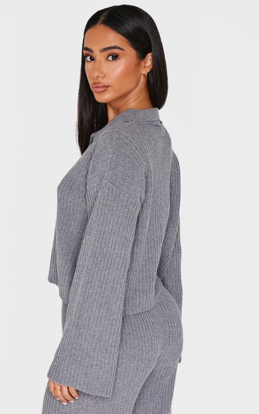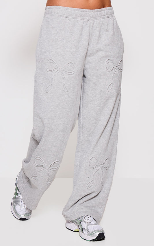 Petite Grey Marl Embossed Bow Detail Wide Leg Joggers Next Day Delivery 10 PM
