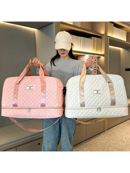 Solid Color Minimalist Travel Luggage Handbag With Zipper, Multi-Function Independent Shoe Compartment, Large Capacity Storage Lightweight Shoulder Bag For Men And Women