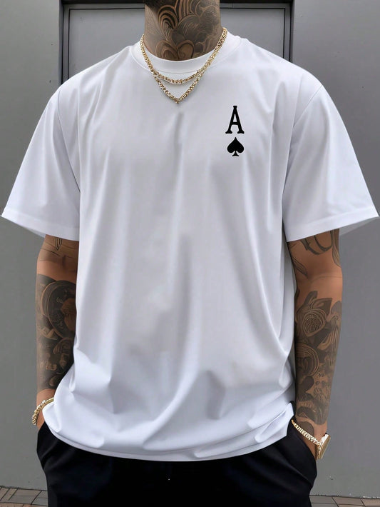 Spades A Poker Pattern Printed T-Shirts Casual Short Sleeved Round Neck T-Shirt