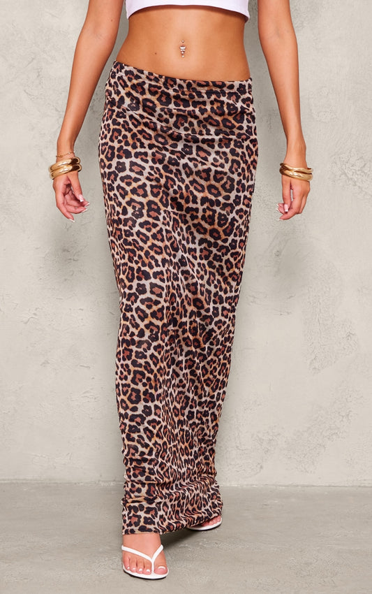 Tall Leopard Print Lined Mesh Maxi Skirt Next Day Before 10 PM