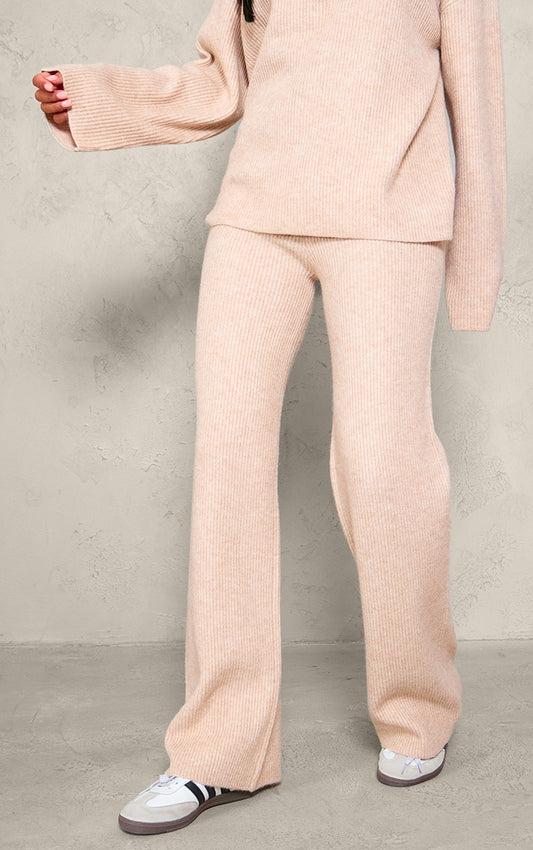 Tall Oatmeal Rib Knit Wide Leg Trousers Next Day Delivery Before 10 pm