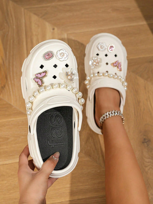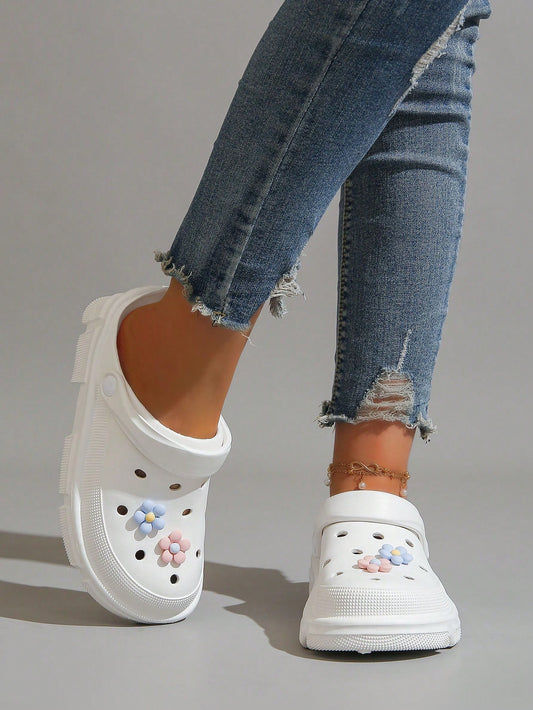Two Day Delivery Preppy Vented Clogs For Women, Applique Decor Hollow Out EVA Slingback Clogs