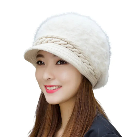 Women Rabbit Fur Knitted Hats Casual Solid Color Autumn Girls Winter Hat Female Bonnet Caps Boina Feminino Bonnets Bucket Hat