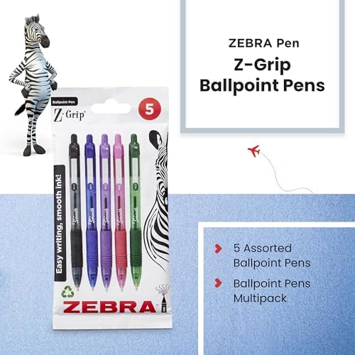 ZEBRA Pen Z Grip Smooth Black Ballpoint Pens, Comfortable ZEBRA Pens With Pocket Clip, Retractable Ballpoint, Reliable Black Biro Pens Multipack For Everyday Use - Medium Point, 5pk