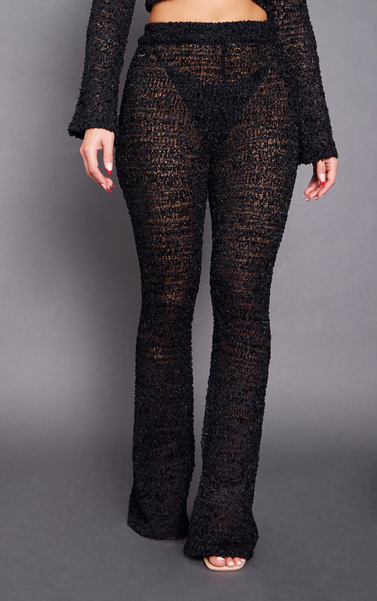 Black Bobble Knit Flared Trousers Next Day Delivery Before 10 pm