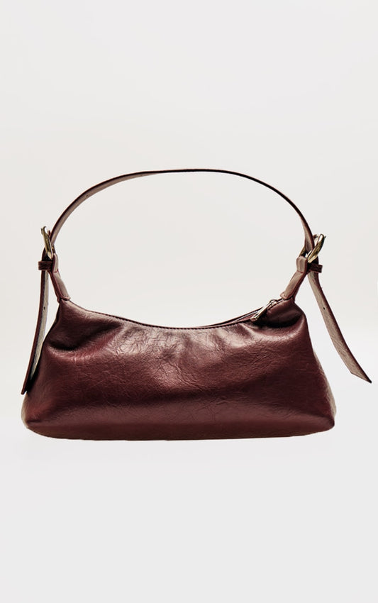 Burgundy Crinkle Pu Buckle Detail Shoulder Bag