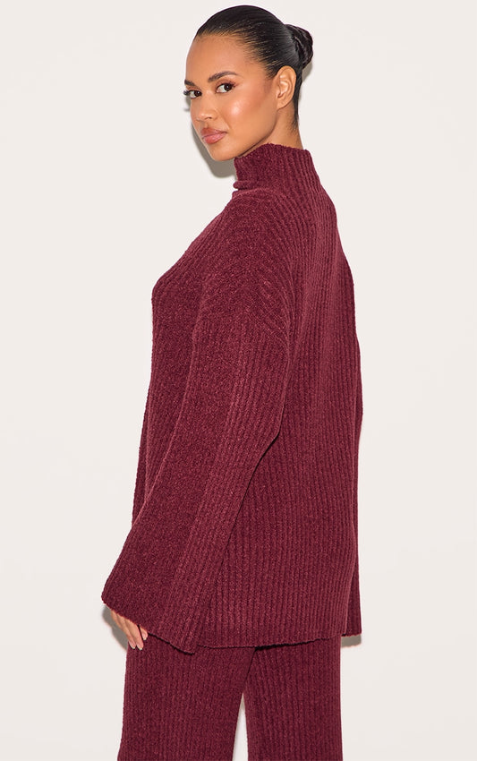 Burgundy Rib Boucle Knit Oversized Jumper