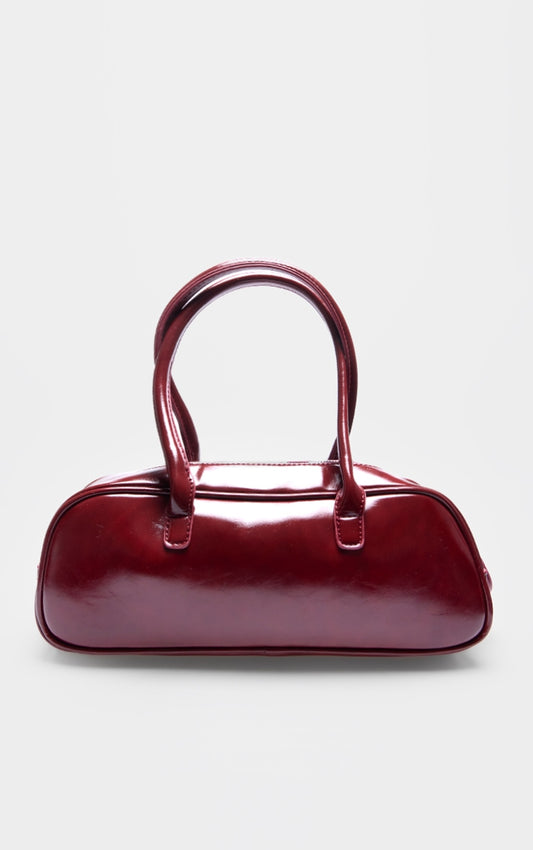 Burgundy Patent PU Baguette Shoulder Bag