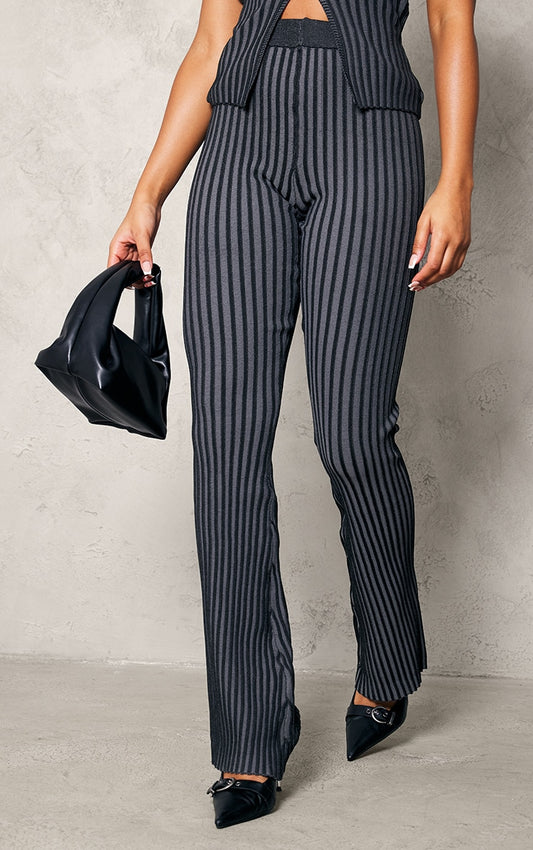 Black Two Tone Knit Flared Trousers Next Day Delivery Before 10 pm