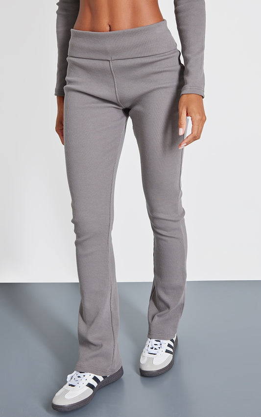 Charcoal Rib Fold Over Waist Flared Trousers Next Day Delivery