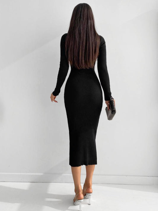Cryptographic Autumn Fashion Sexy Open Back Solid Slinky Mini Dress Club Party Outfits Long Sleeve Round Neck Bodycon Dresses