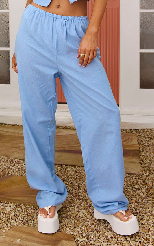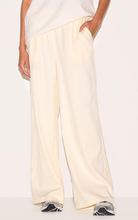 Cream Woven Elasticated Waist Wide Leg Trousers
