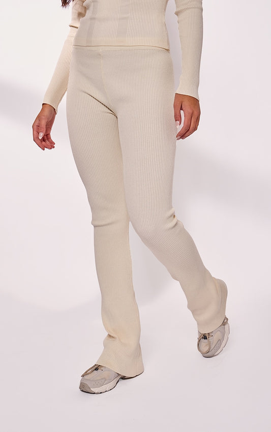 Cream Rib Knit Flared Trousers Next Day Delivery Before 10 pm