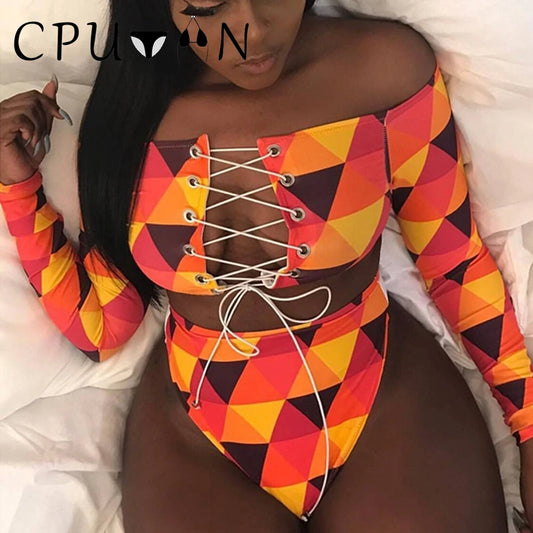 CPUTAN 2024 Sexy Lace Up Bikini Set High Waist Two Piece African Print Biquini Swimsuit Brazilian BathingSuit Beachwear Swimwear