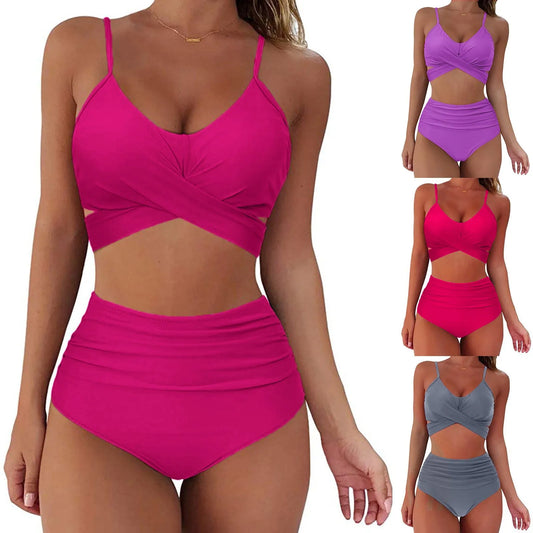 New Fashion Women Sexy Soild Print Bikini Set Push Up Bathing Swimwear Beach High Waist Swimsuit Swimming Suit Beachwear Biquini