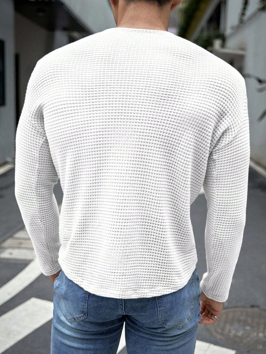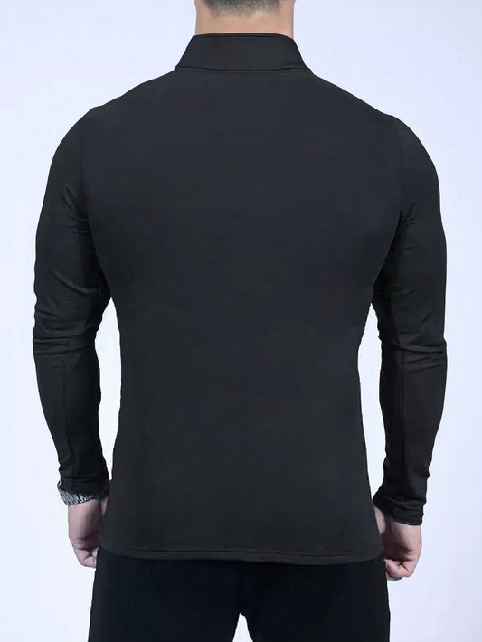 Manfinity Dauomo Men Spring And Summer Solid Color Zipper Half Placket Stand Collar Long Sleeve Casual T-Shirt
