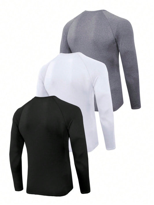 Manfinity Homme Men 3pcs Solid Plain Casual Long Raglan Sleeve Tee, For Going Out