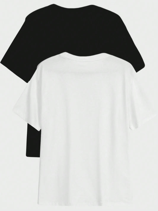 Men Round Neck Short Sleeve Solid Color Casual Two-Pack Black And White T-Shirts