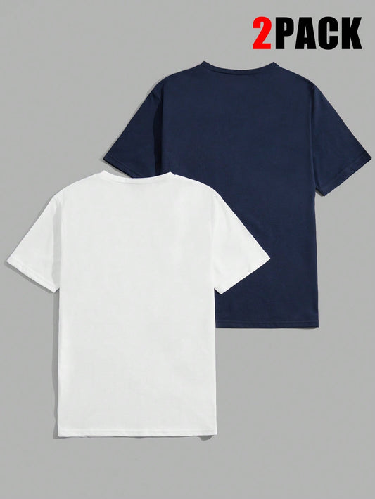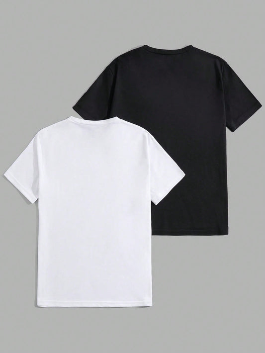 SHEIN Men Cottonline 2pcs Letter Printed Regular T-Shirts