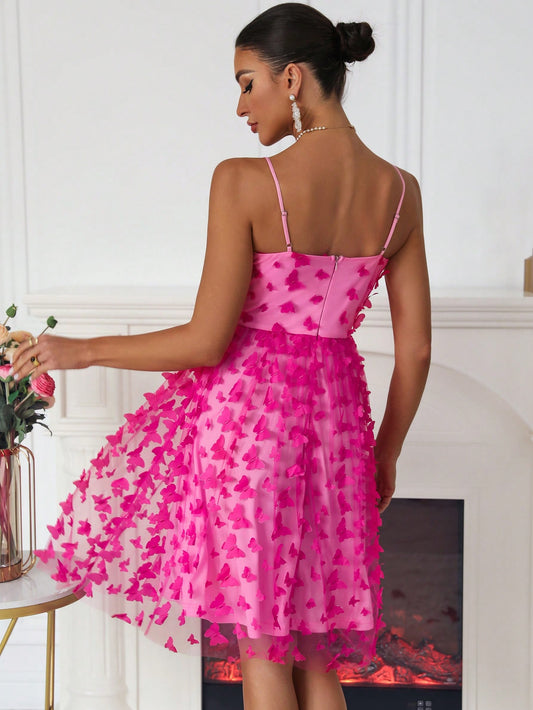 Belle Women's Butterfly Embroidered Mesh Cami Dress For Cocktail Party