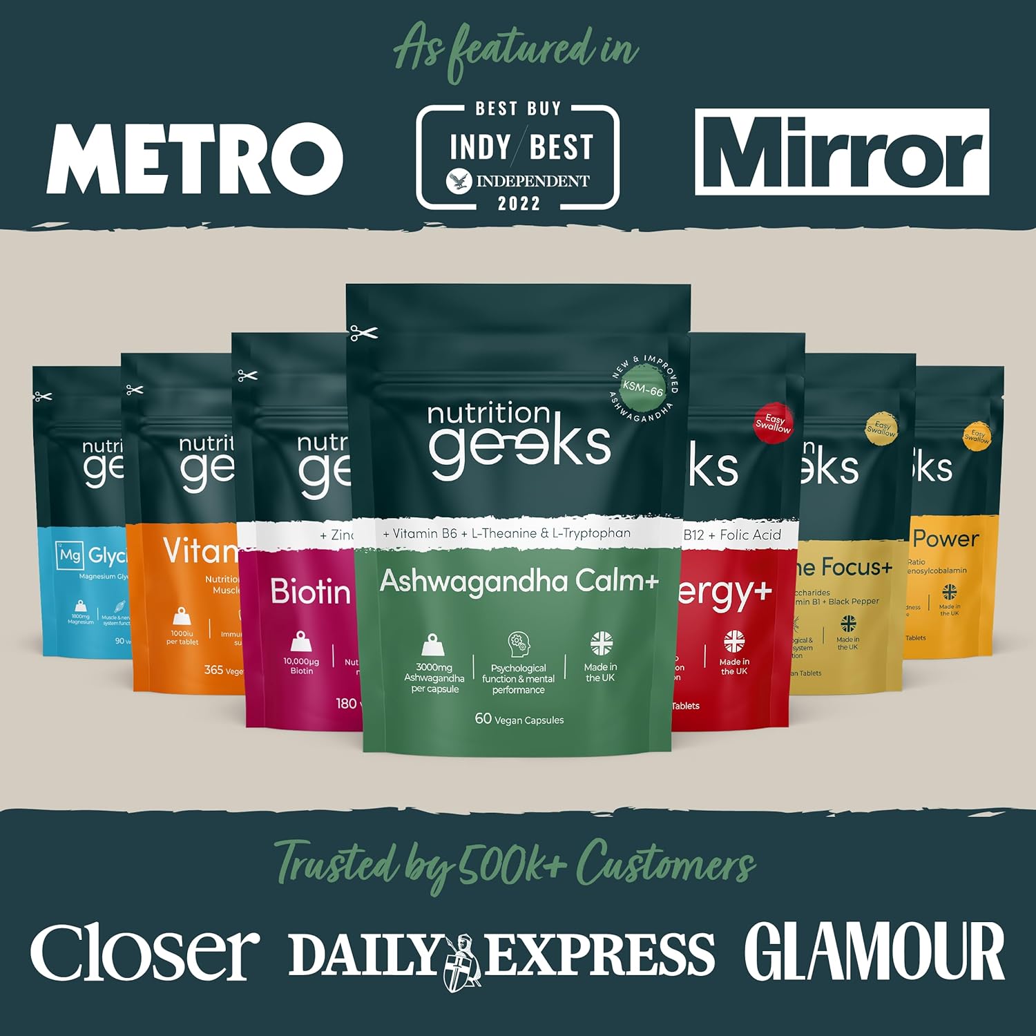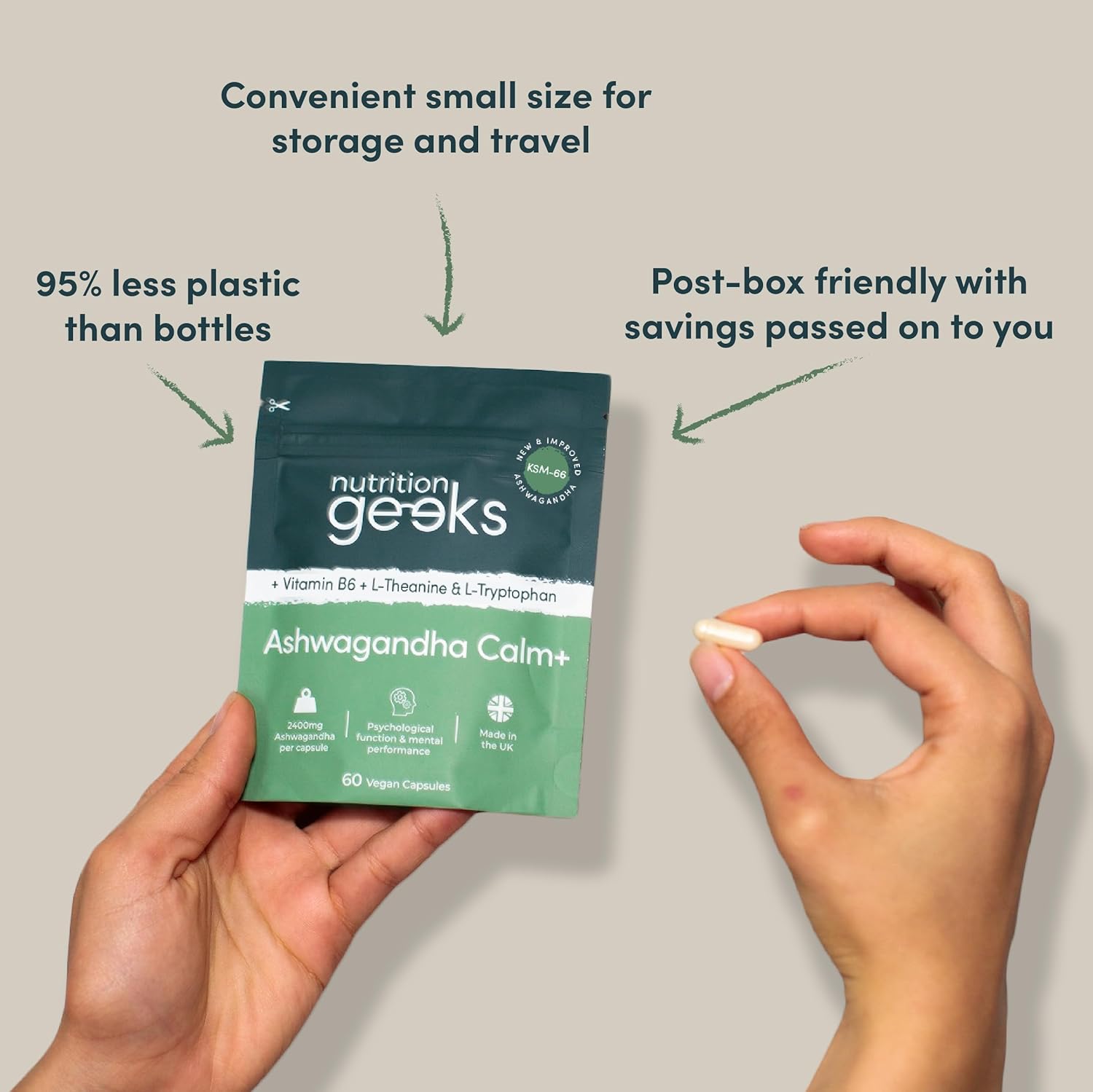 - ️ Letterbox Friendly and Great Value for Money ️ Nutrition Geeks' supplements come in flat pack packaging, saving on costly postage and storage fees associated with other bottled ashwagandha gummies, ashwagandha tablets or organic ashwagandha tea. Keep calm and remember it's Ashwagandha, not ashwaganda supplement, ashwaghanda, or aswaganda!
