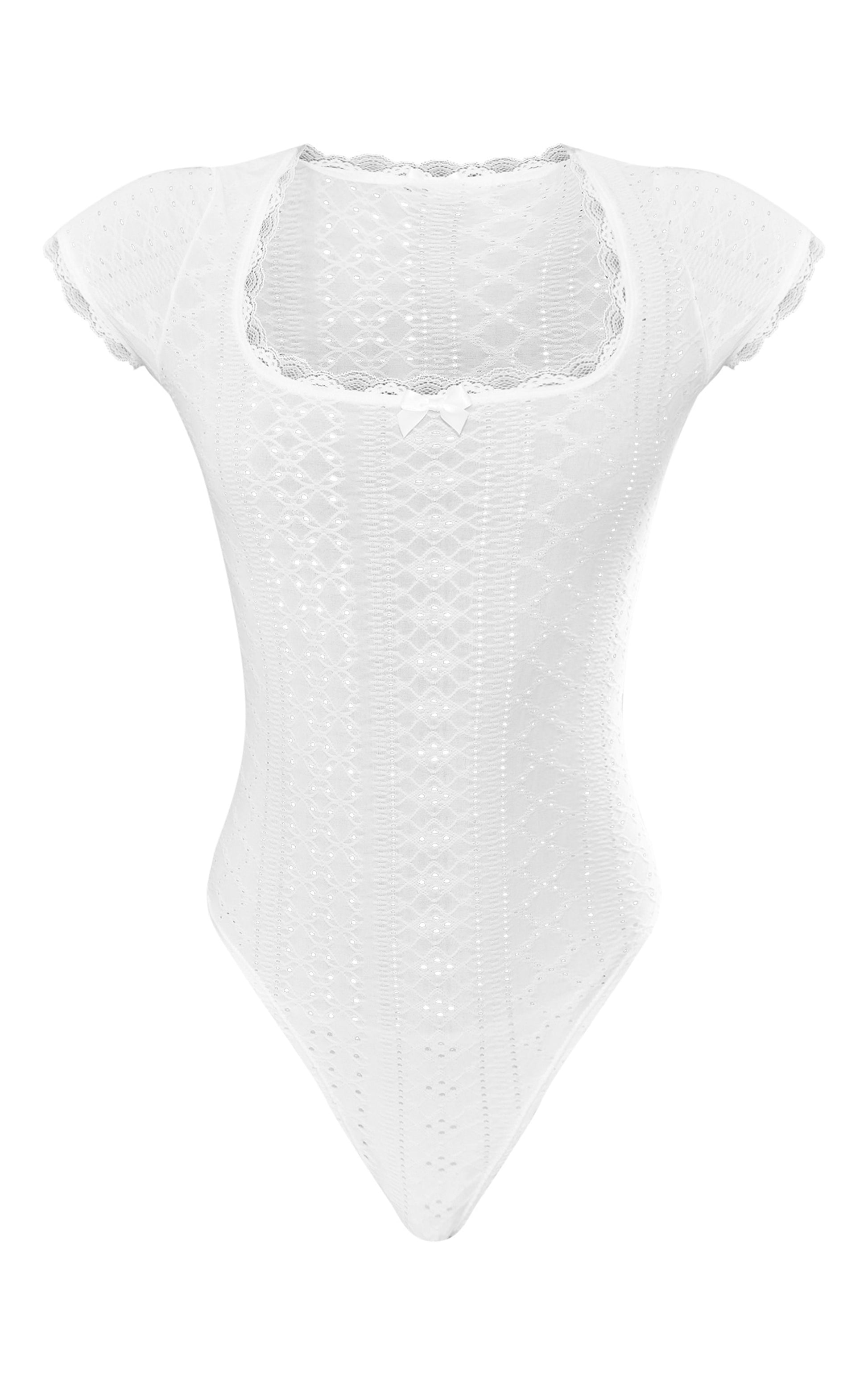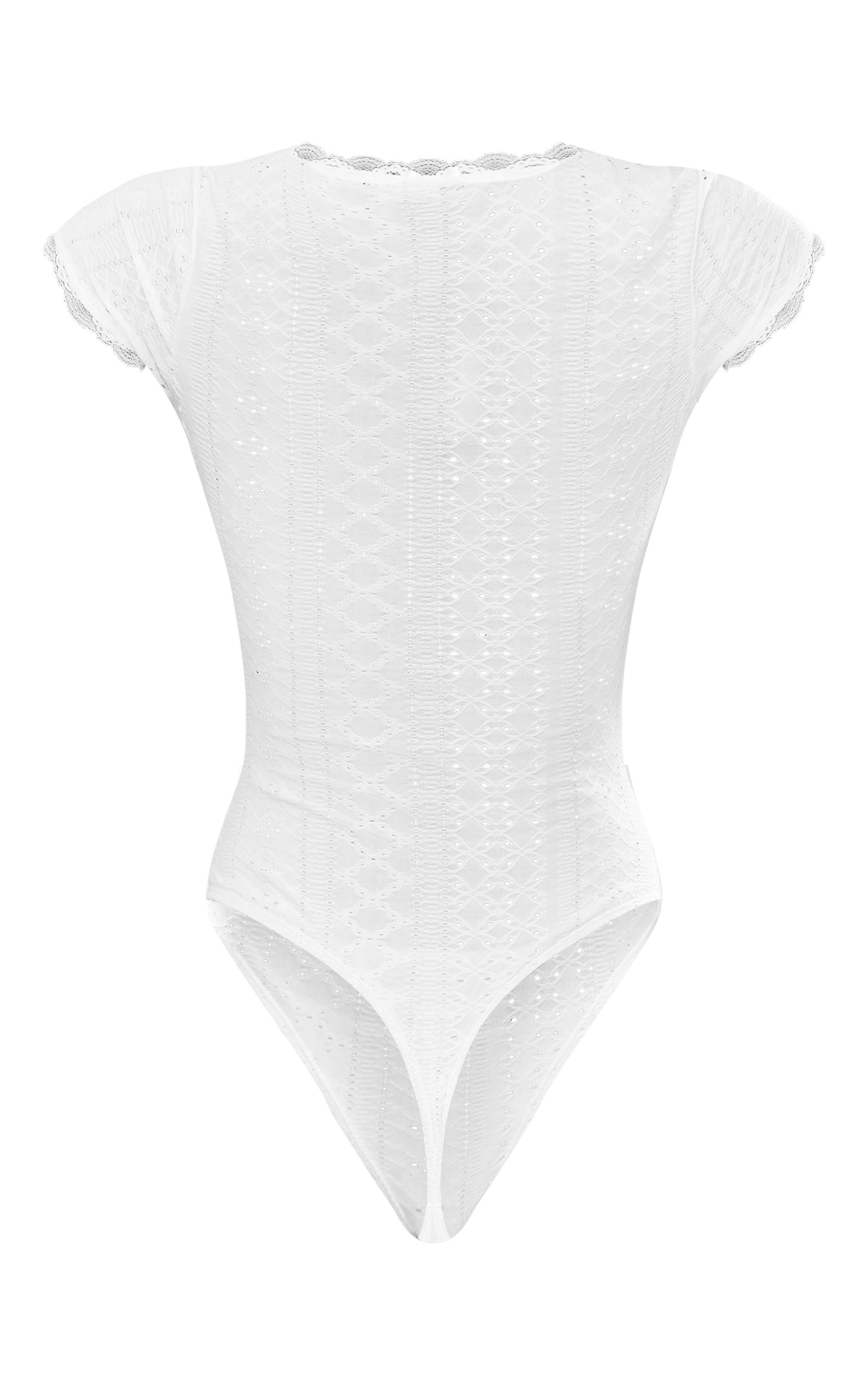 Next Day Delivery Before 10 PM Black Textured Stretch Lace Trim Short Sleeve Bodysuit
