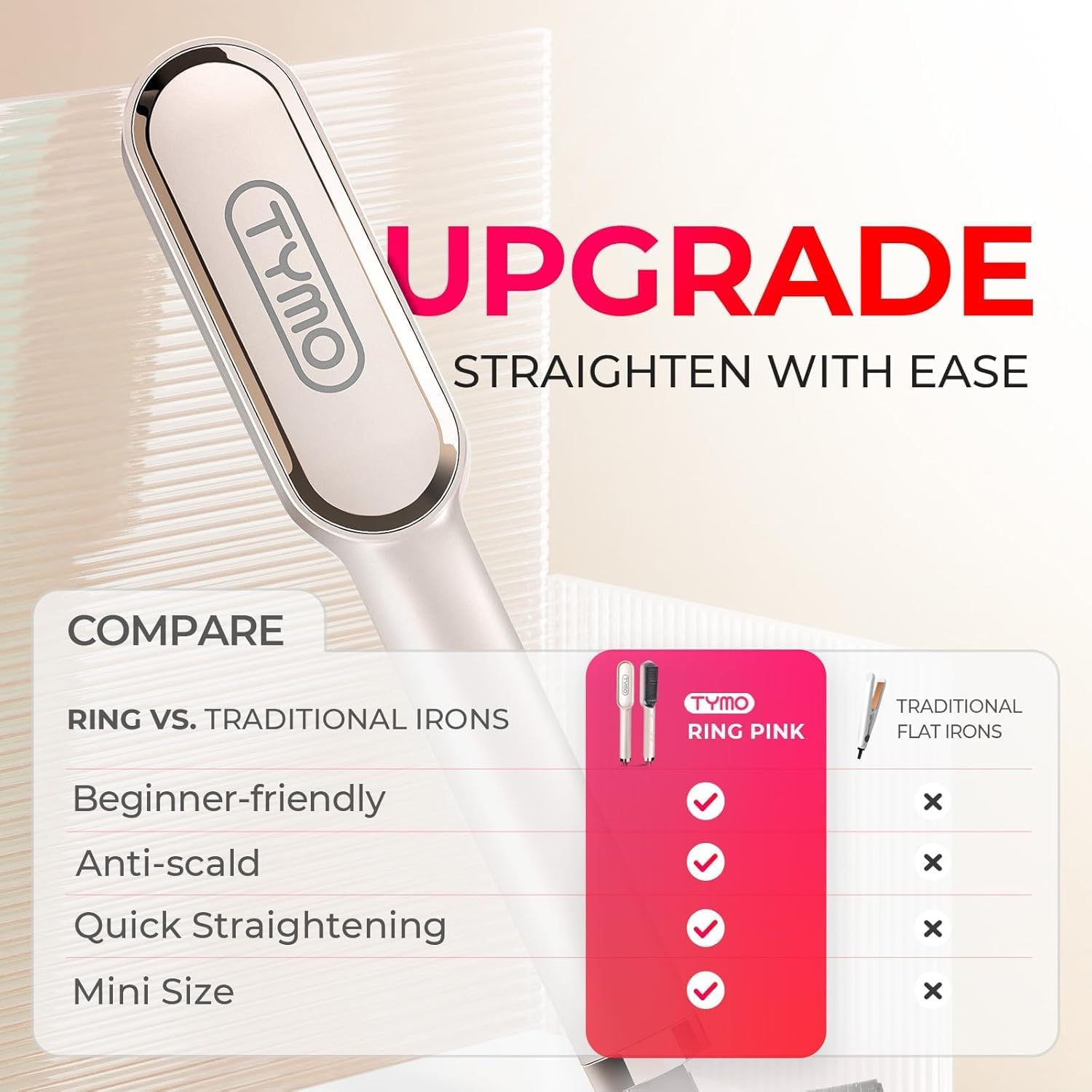 - TYMO RING - Hair Straightener Brush combines the functions of a straightener and a brush, allowing for smooth straightening of hair. Compared to traditional straighteners, it is gentler on the hair, avoids pulling, and produces a more natural effect