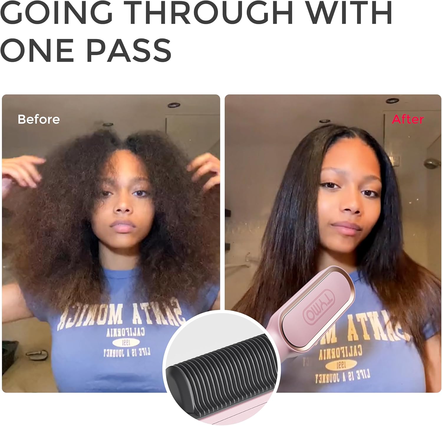 Next Day Delivery TYMO Hair Straightener Brush UK, Flat Iron and Hair Brush 2-in-1, Anti-Scald, Fast Heating, 5 Temp Settings (130℃-210℃), Professional Salon at Home, Wider Comb for Even Straightening, TYMO Ring