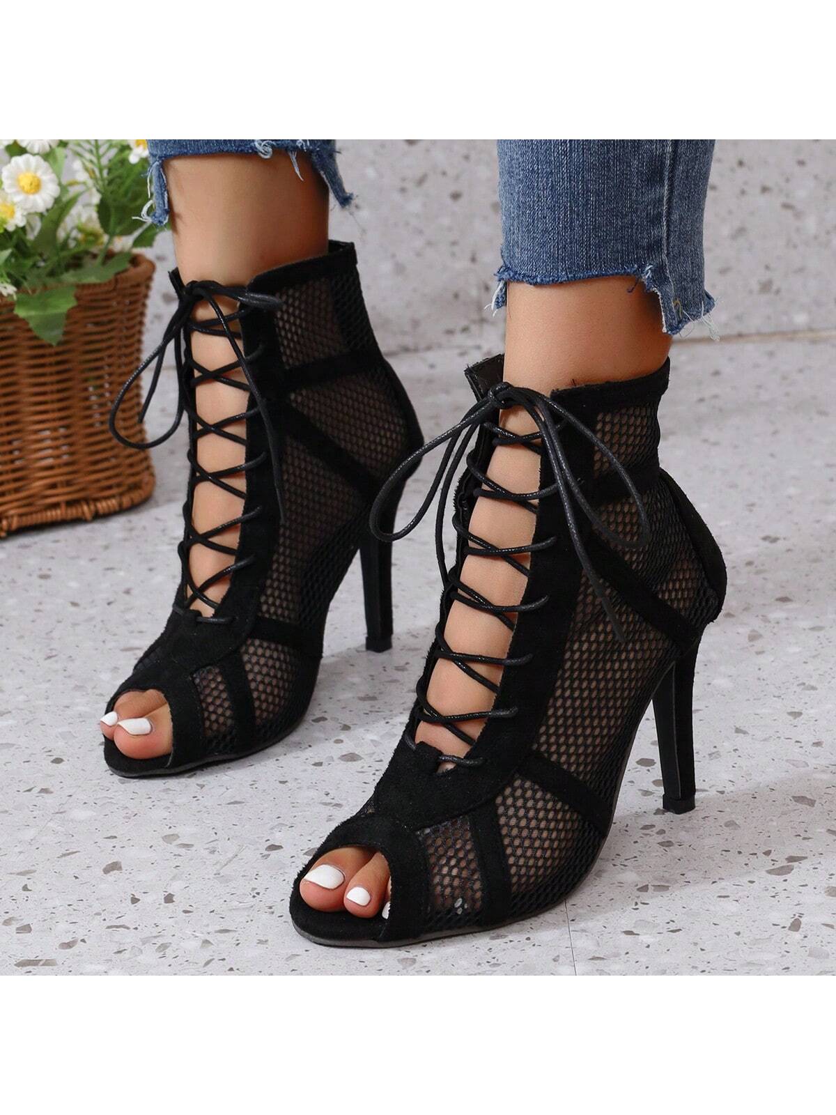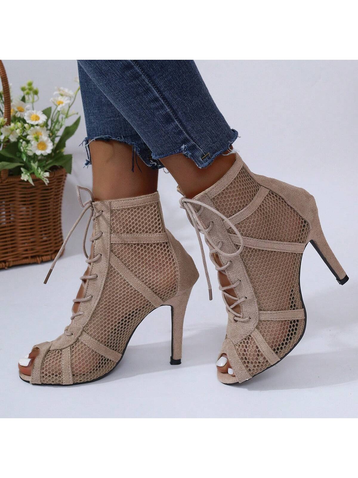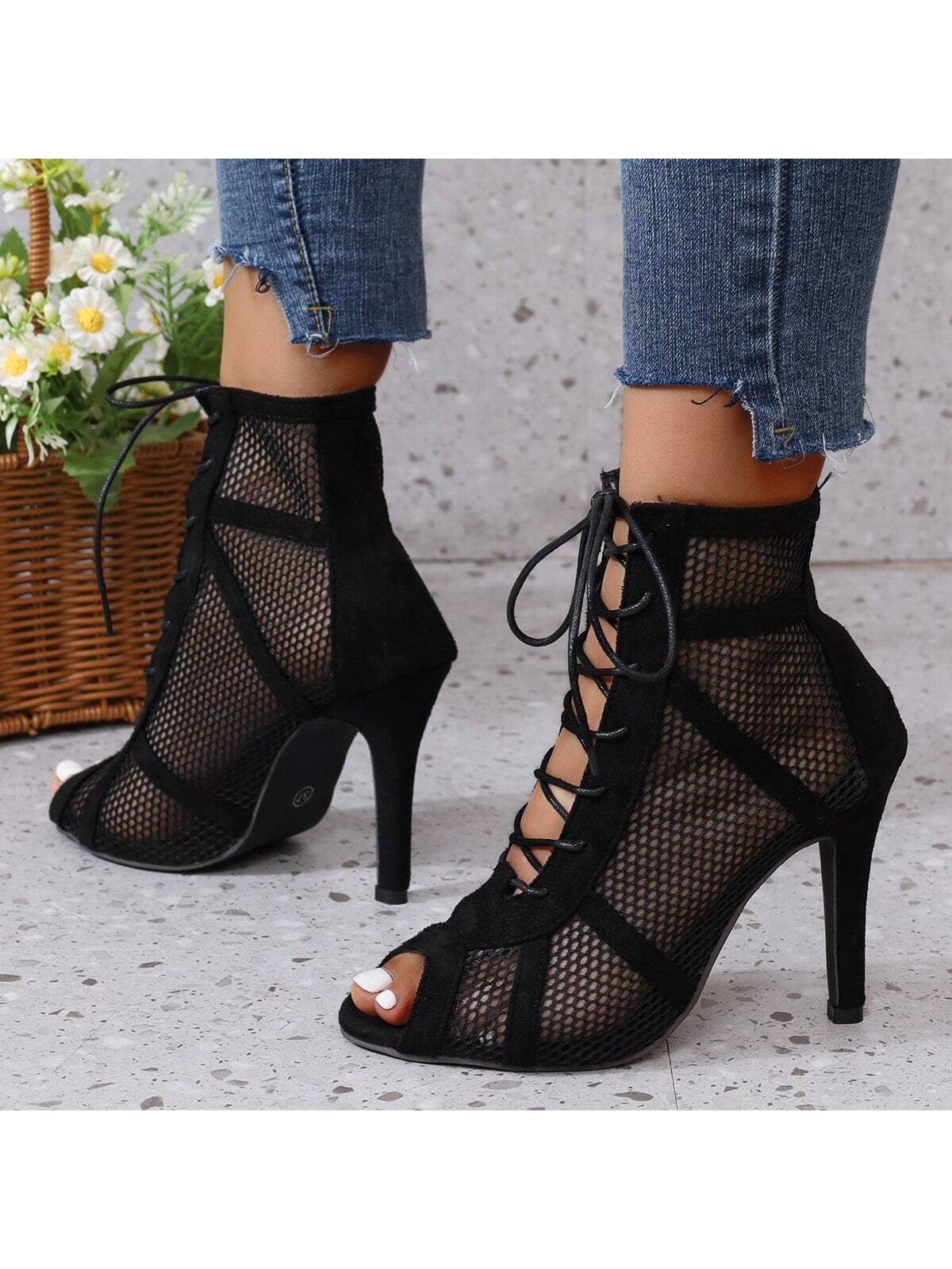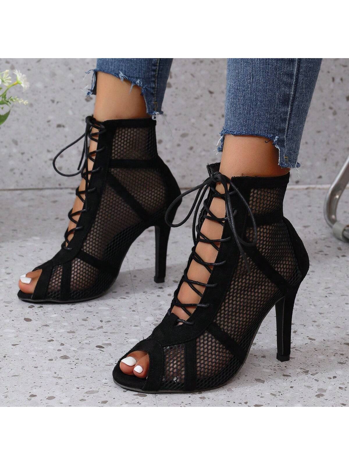 Women's High Heel Mesh Shoes, Elegant, Fashionable For Business And Party Wear